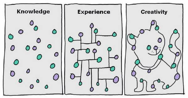 Fig. 2.2 Experience, Knowledge, and Creativity (*Nikolaos Arvanitis says that the original graph (knowledge & experience) is done by cartoonist Hugh McLeod. I personally would frame the constructs as information => knowledge => Expertise)#
