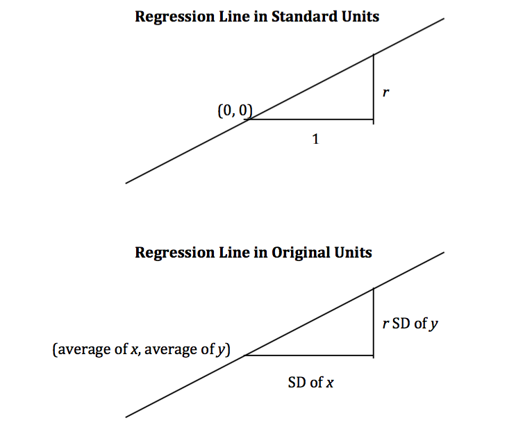 The correlation coefficient \(r\) doesn’t just measure how clustered the points in a scatter plot are about a straight line. It also helps identify the straight line about which the points are clustered. In this section we will retrace the path that Galton and Pearson took to discover that line.